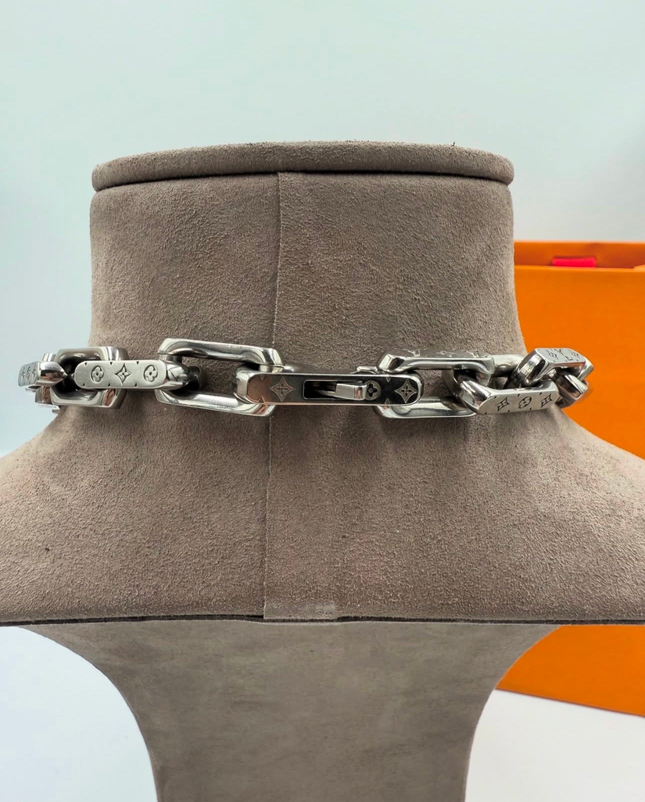 Elevate your collection with the timeless elegance of this Louis Vuitton Monogram Chain Necklace, a stunning piece in excellent pre-owned condition. Crafted from stainless steel with silver-tone hardware, this necklace is adorned with finely engraved Monogram patterns on each link, capturing the essence of Louis Vuitton's iconic design.