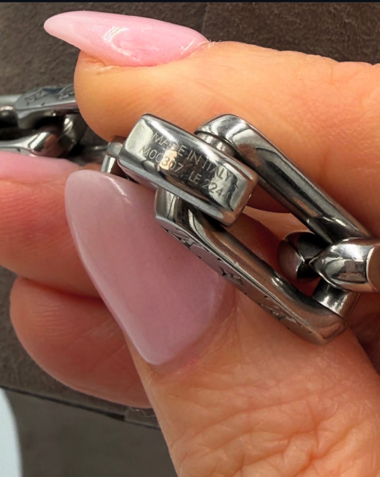 - Details: Signature Monogram engravings on each link