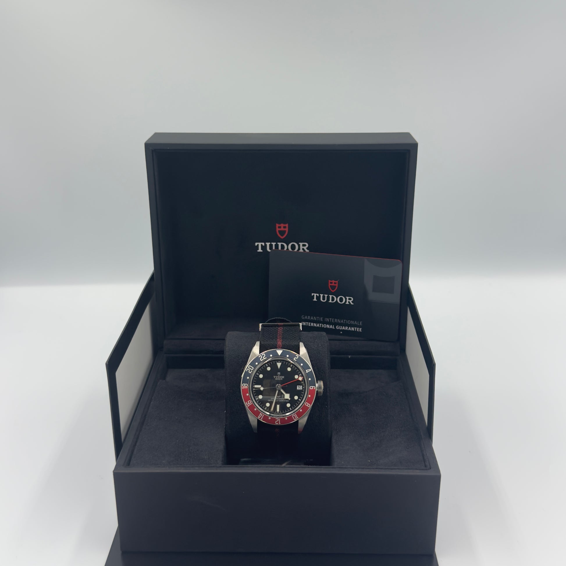 Unworn TUDOR Black Bay GMT 41mm Black Dial on Nato Strap 79830RB