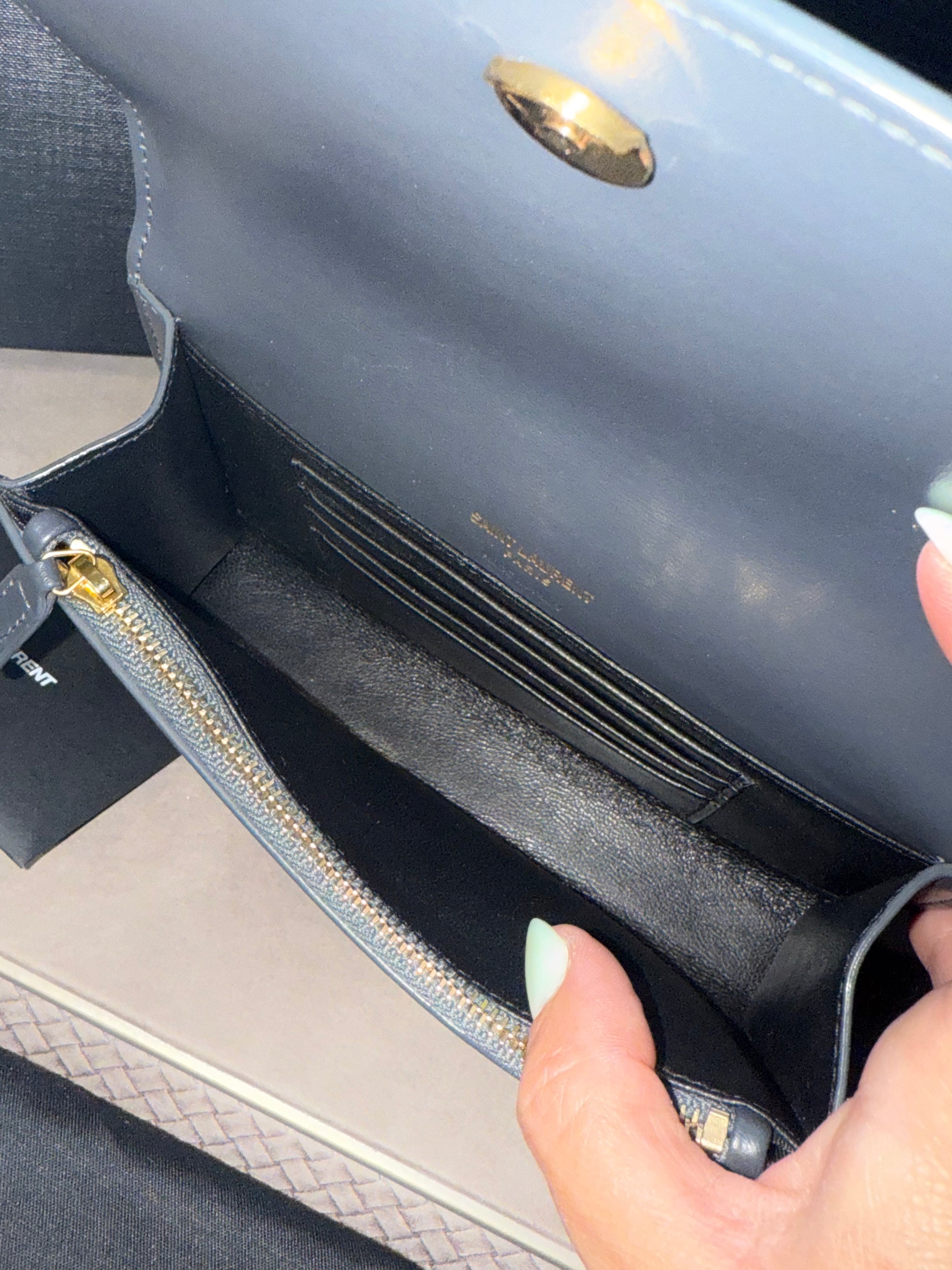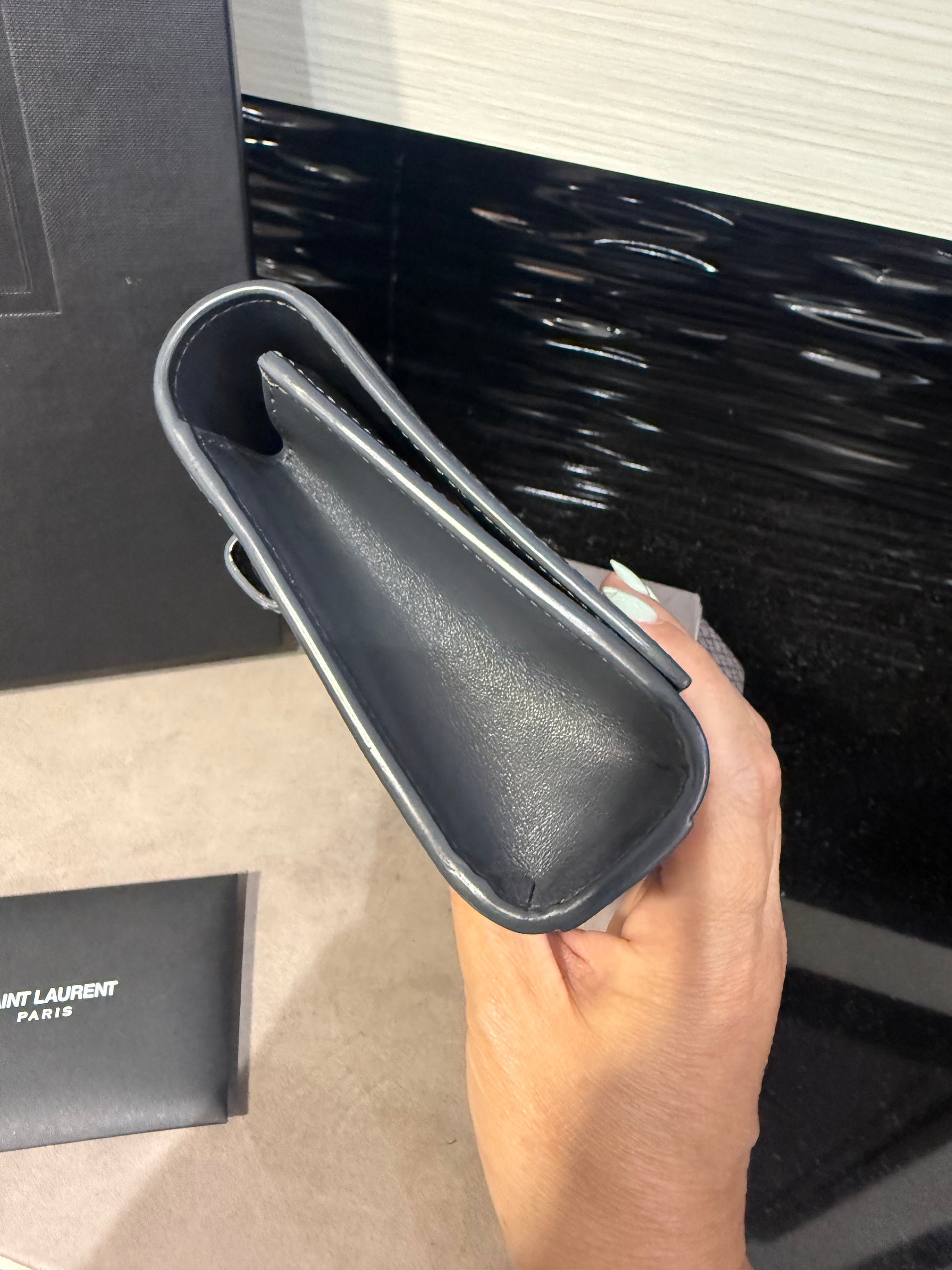 Interior: Leather lining, single pocket with card slots