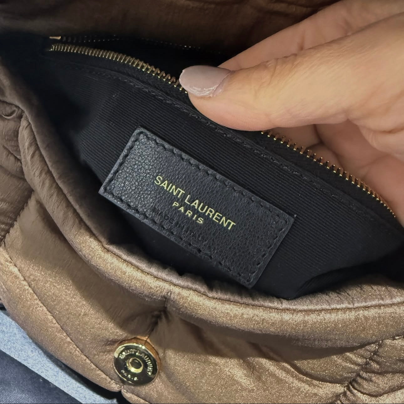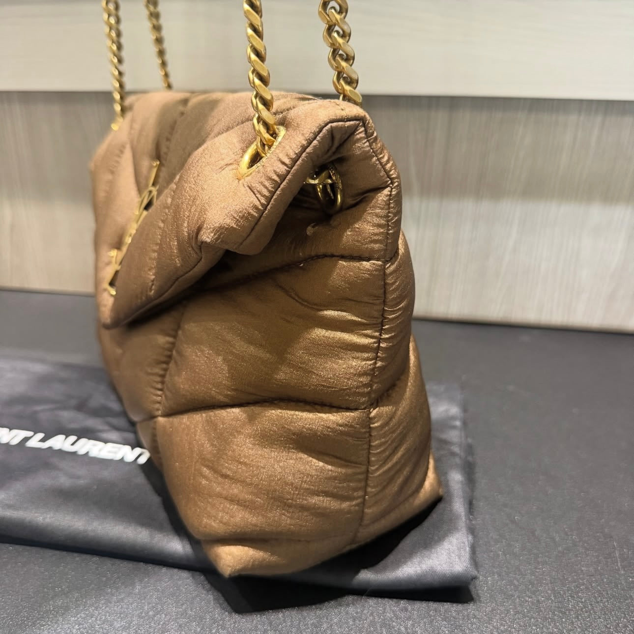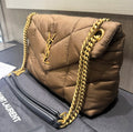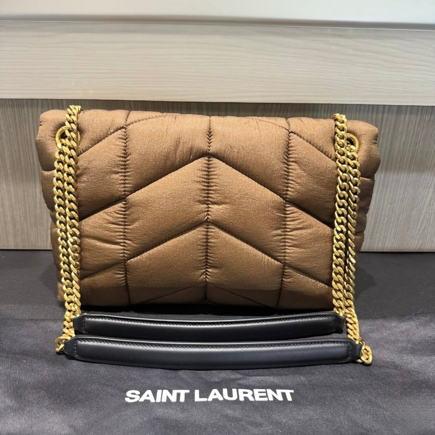 Unworn YSL Saint Laurent Nylon Small Puffer Tetra Brown Antique Gold Hardware