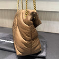 Lightweight yet luxurious, this Saint Laurent Small Puffer Bag is a versatile statement piece—ideal for both day and evening wear. Its adjustable chain strap and soft, pillowy construction make it the perfect blend of relaxed charm and refined YSL allure.